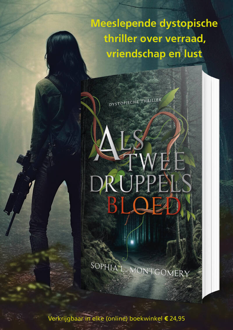 "Als Twee Druppels Bloed" van Sophia L. Montgomery is als een duistere dans tussen bloedlust en verborgen geheimen, een meeslepende Dystopische Thriller die de lezer meeneemt naar de verre uithoeken van de Lage Landen.